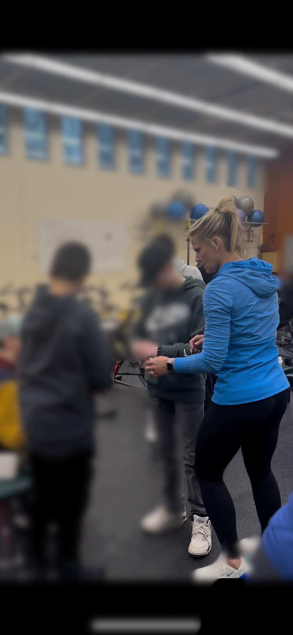 - Mrs. Kassian, Head of the BRDHS Physical Education Department, shows students how to utilize a blood pressure monitor.